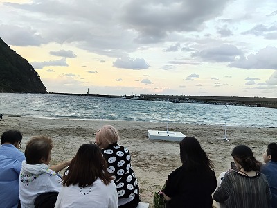 けど、開場開演中は大丈夫。浜辺桟敷2列、クッション追加スタジアムベンチ5列。